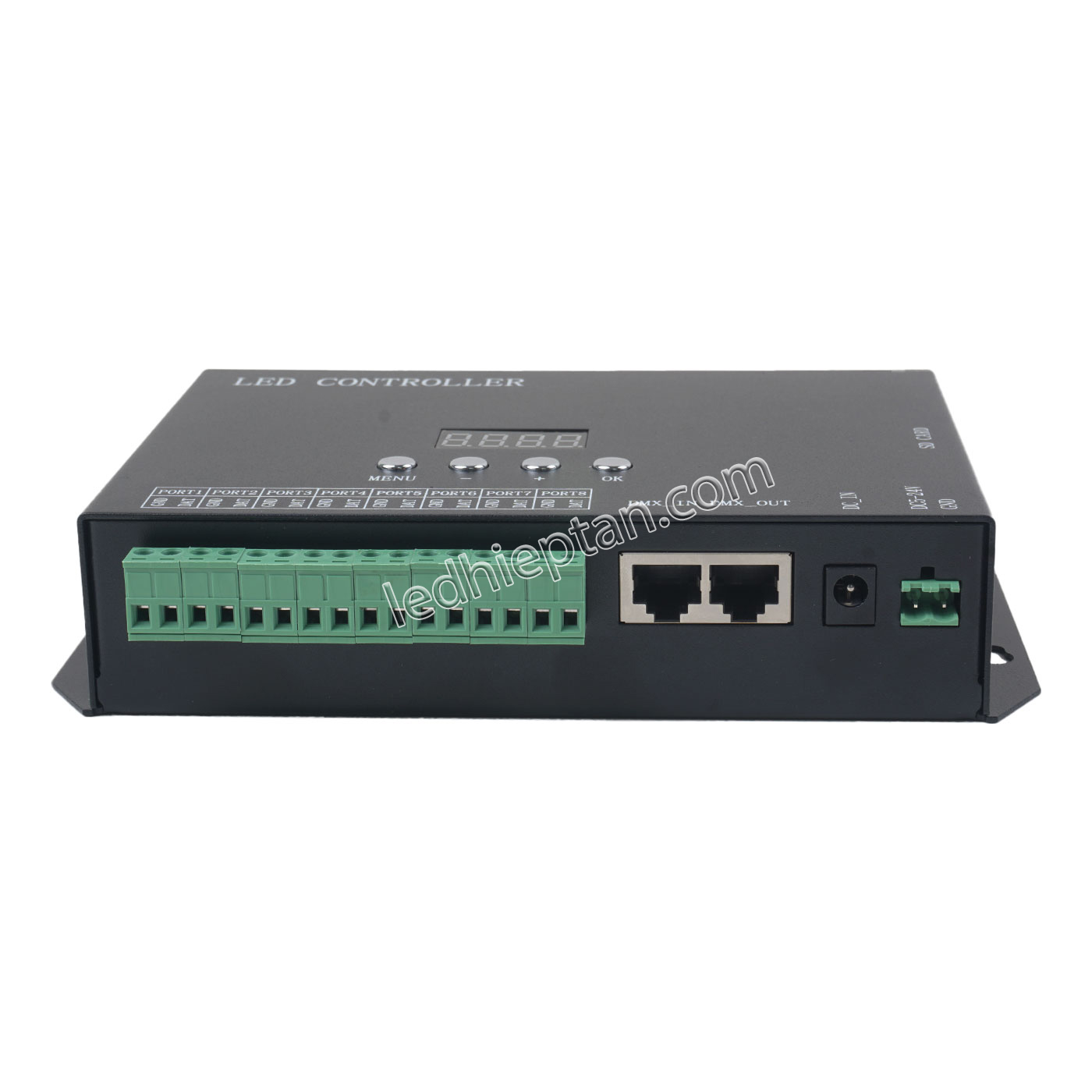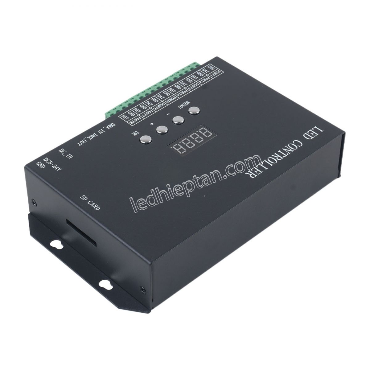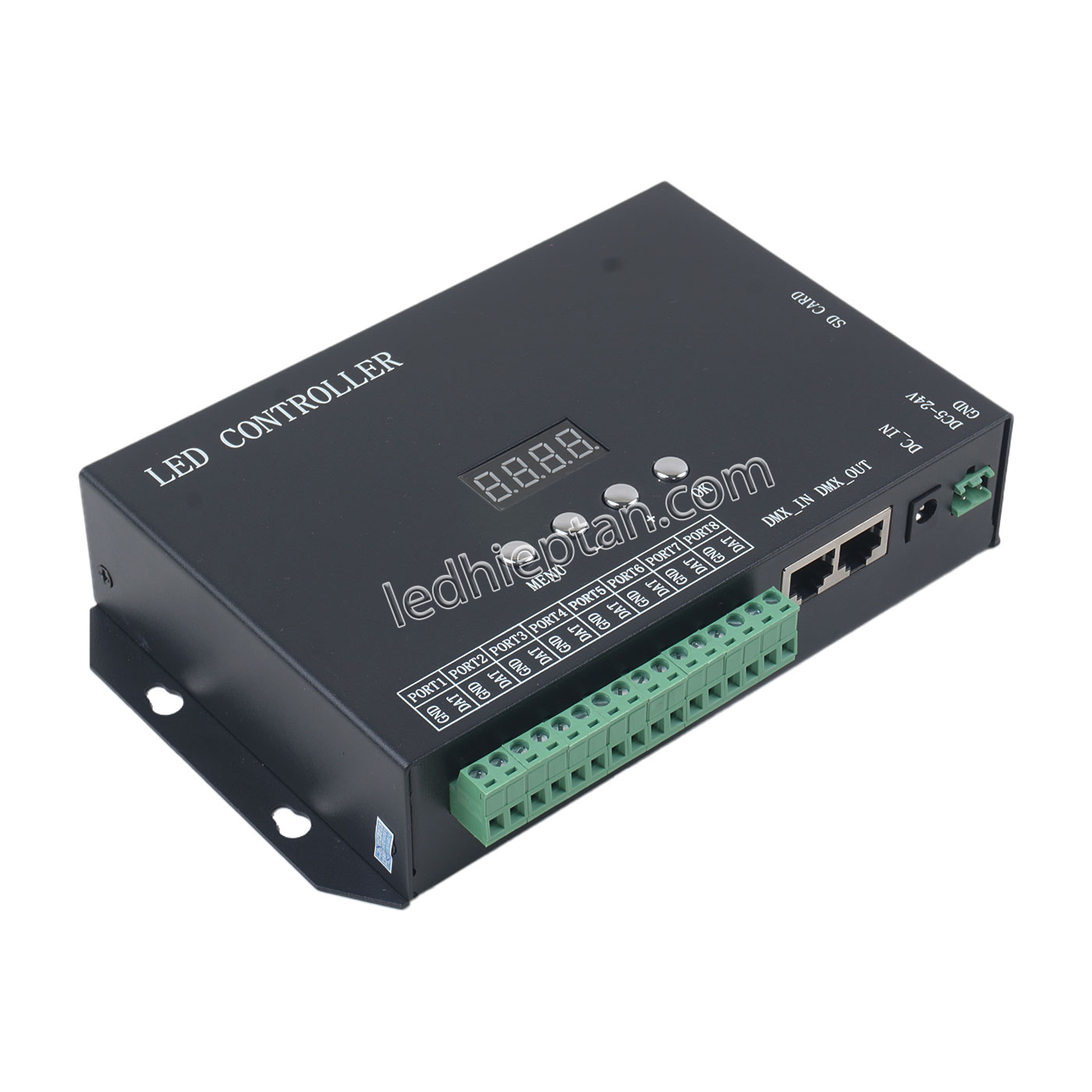 Mạch H808SF 8192 pixels Huacan có 8 cổng đầu ra, có thể điều khiển 8092 điểm ảnh. Có thể đồng bộ nhiều H808SF với nhau.