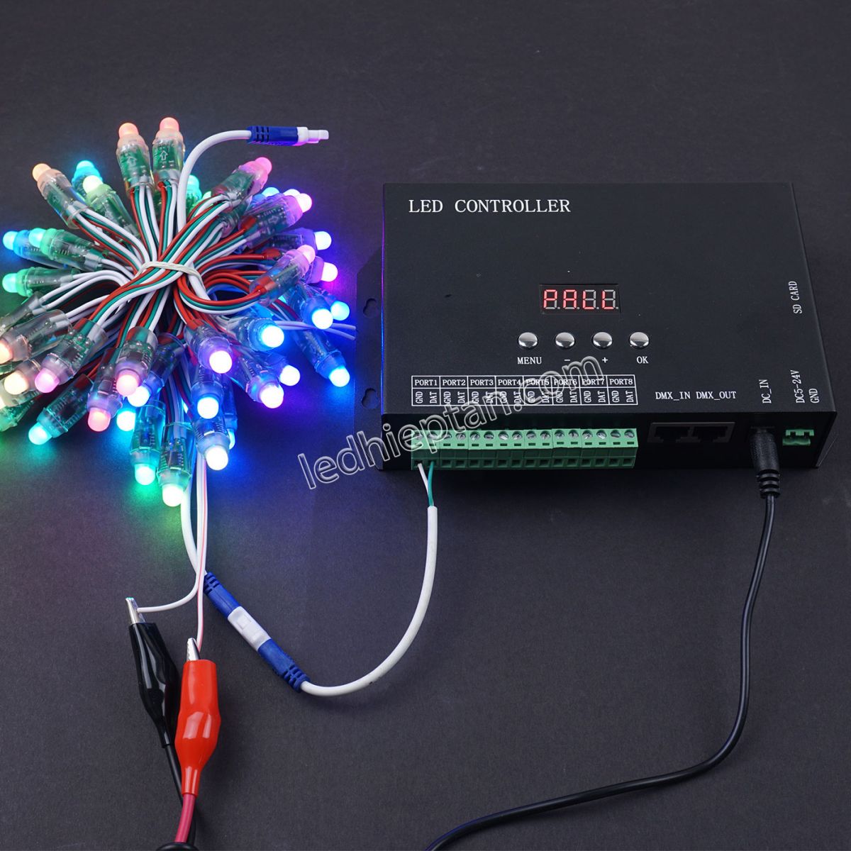 1. Tám cổng đầu ra, điều khiển lên đến 8192 pixel. Mỗi cổng có thể kiểm soát tối đa 1024 pixel