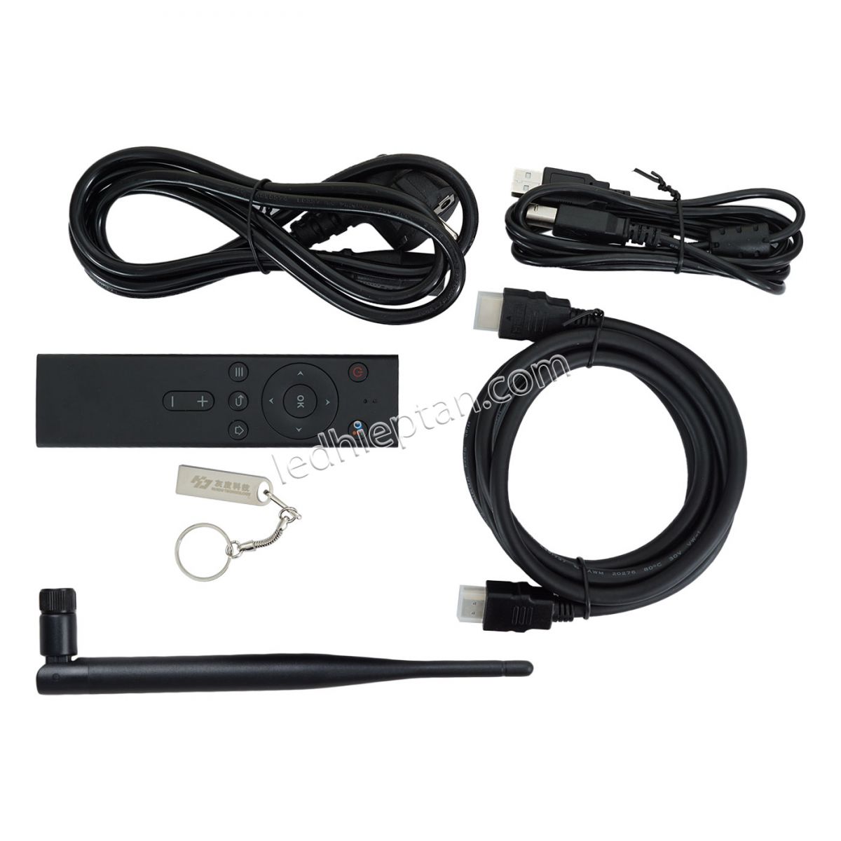 Ăng ten, dây nguồn, dây HDMI, dây USB type B, remote, USB |