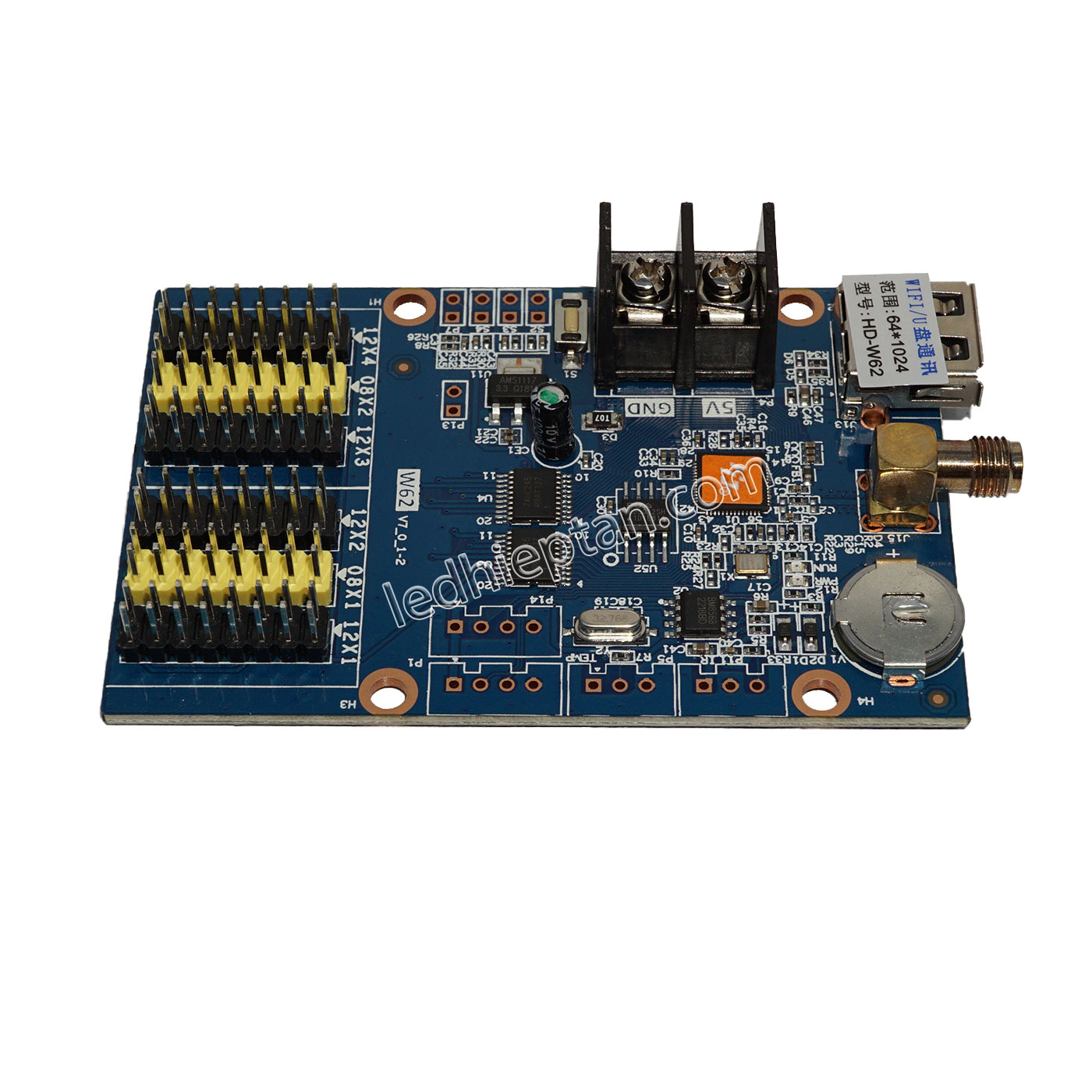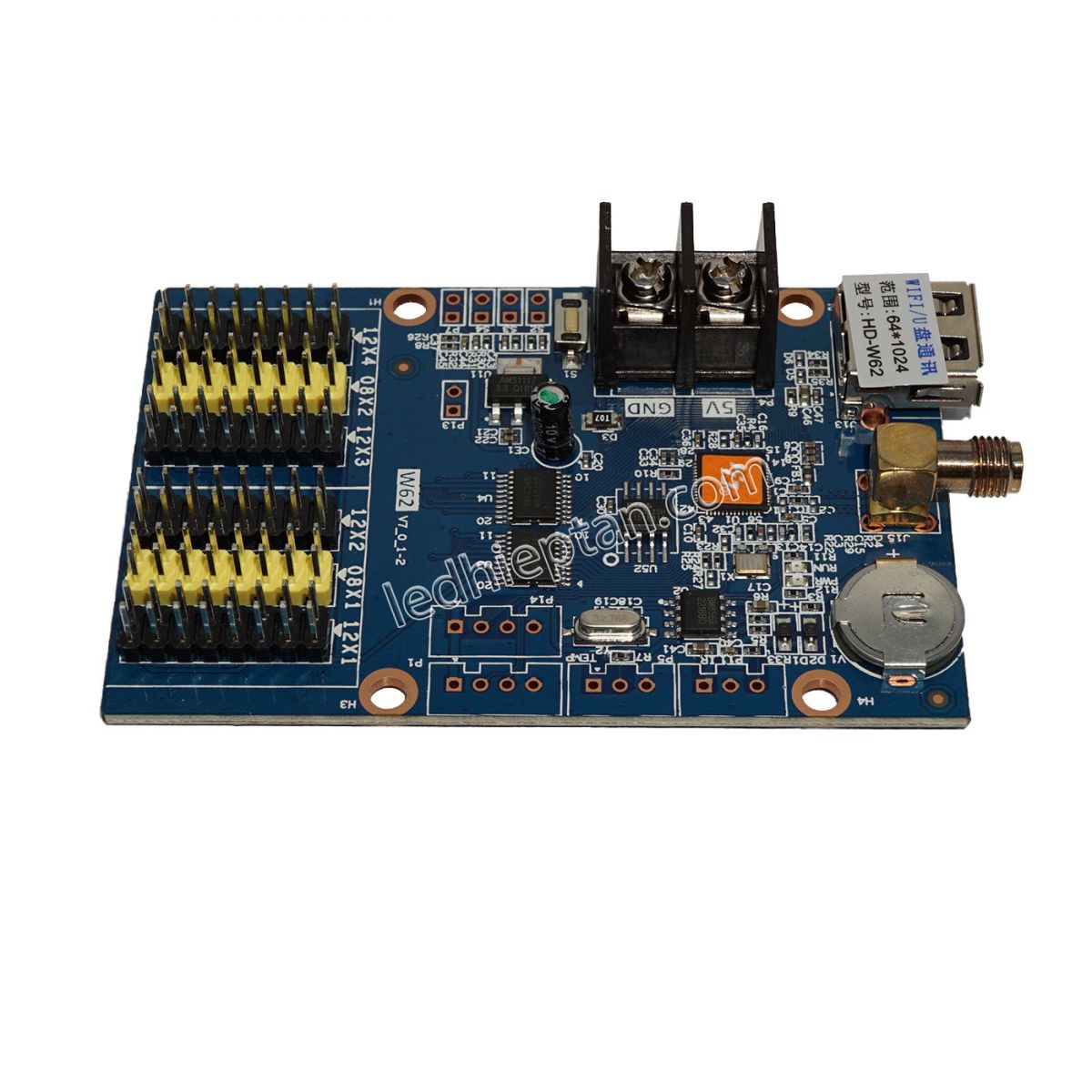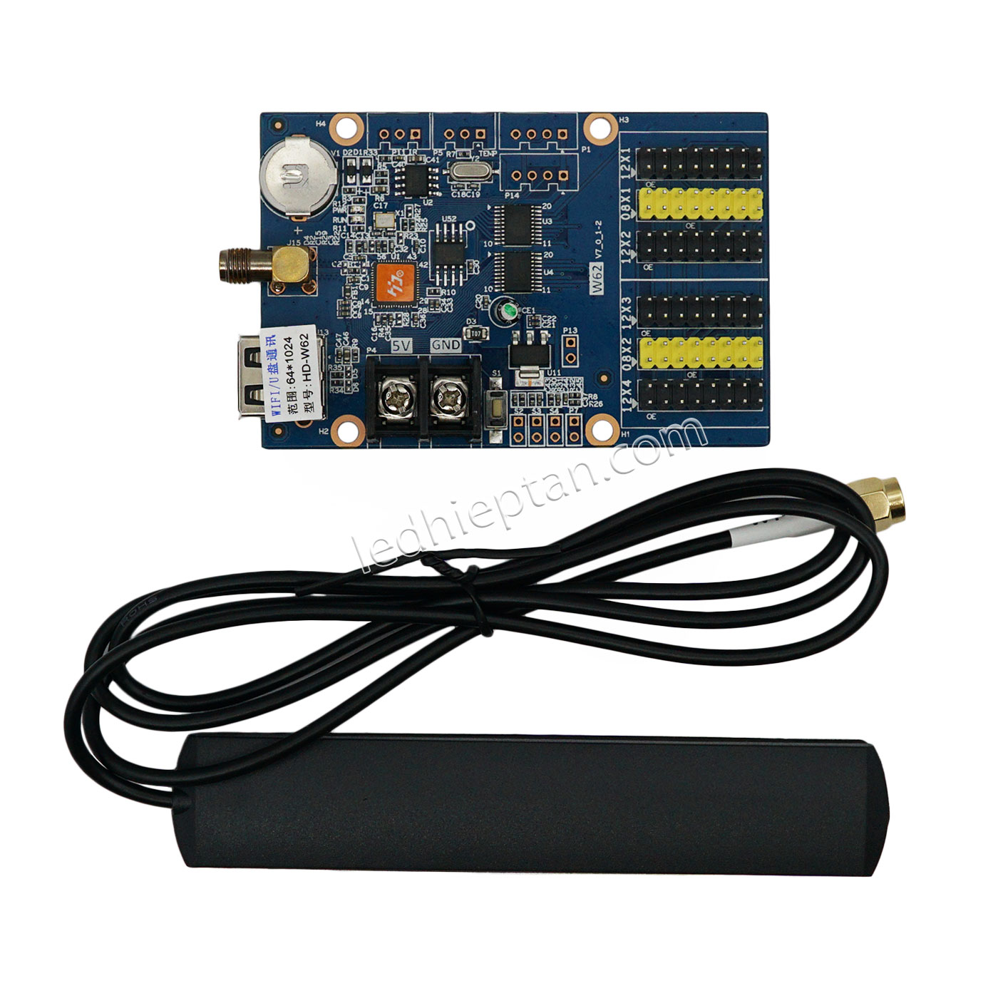 Card HD - W62 là card điều khiển Wi-Fi, cập nhật chương trình bằng kết nối WIFI. Có cổng USB, nên cũng có thể sử dụng U-Disk để cập nhật chương trình. Giá thành rẻ, tiết kiệm chi phí, giao diện phần mềm đơn giản, dễ sử dụng, thông tin hiển thị tốt, hiệu quả tốt, hỗ trợ nhiều loại màn hình đơn sắc.