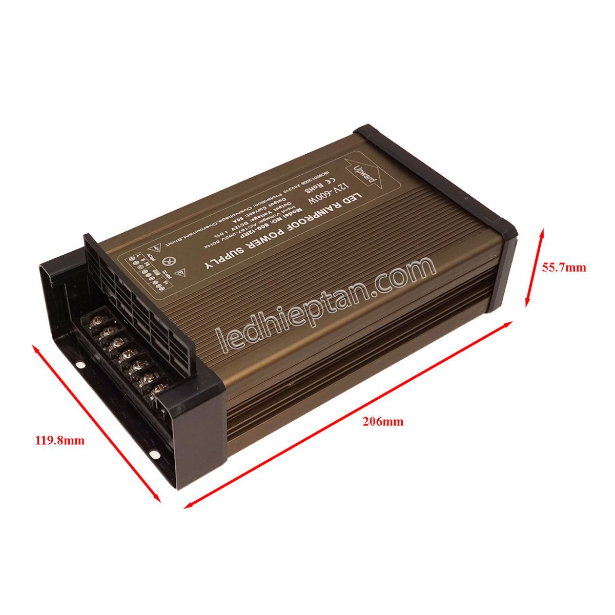 Nguồn 12V50A 600W ngoài trời HT sử dụng cho trang trí biển quảng cáo LED ruồi, LED module, LED thanh cứng, LED dây...các thiết bị không yêu cầu độ ổn định cao, tránh dùng cho các loại đèn có tích hợp IC.
